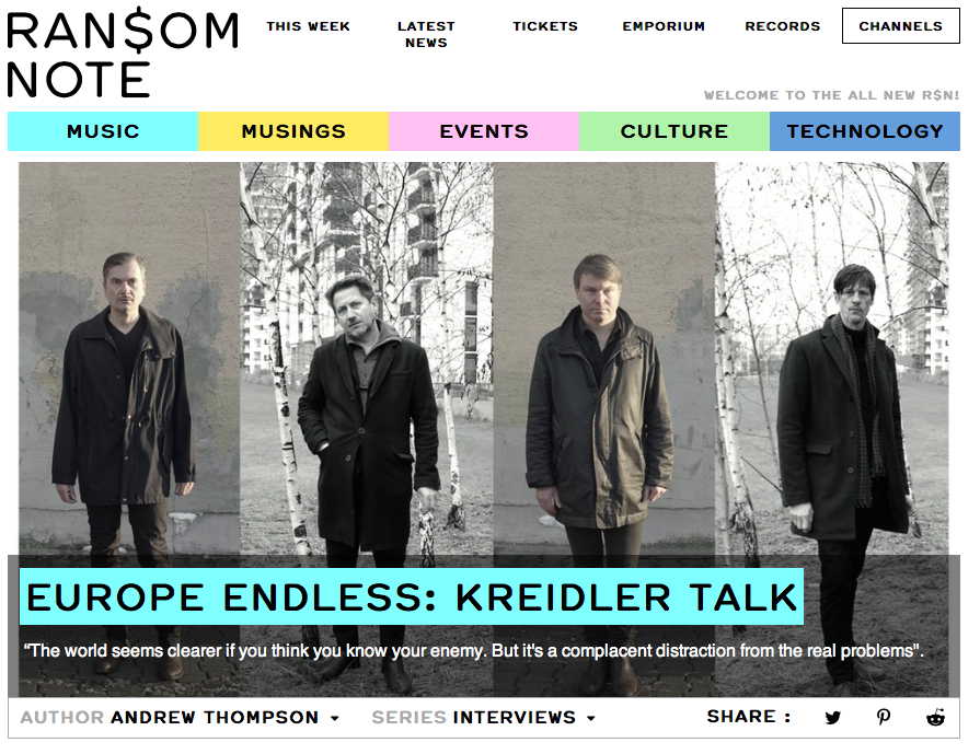 "It's more symbiotic", says Alex. "I don't think Kreidler could continue without having other outlets. I think the external projects enable us to come back to Kreidler with a new set of co-ordinates. We only get together when there's something to do - either for recording or concerts - and it immediately feels familiar. The clash between our different intentions is strangely reliable".
